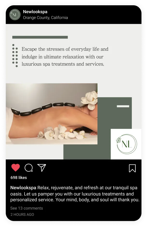 Have a collection of product or client photos? Upload them and watch as we turn them into engaging social media posts. No photos? No problem. Our partnership with Unsplash gives you access to over 5 million high-quality images to make your posts stand out and shine.