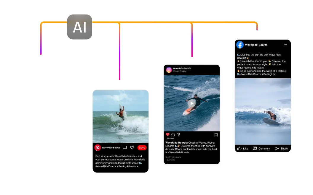 Unleash the power of AI to fuel your social media presence. With AI Generated Content, you can generate custom posts on specific topics or let us take the reins. Craft campaigns with months of engaging content in mere minutes. From Instagram and Facebook to Twitter, your social media platforms are about to experience a content revolution.